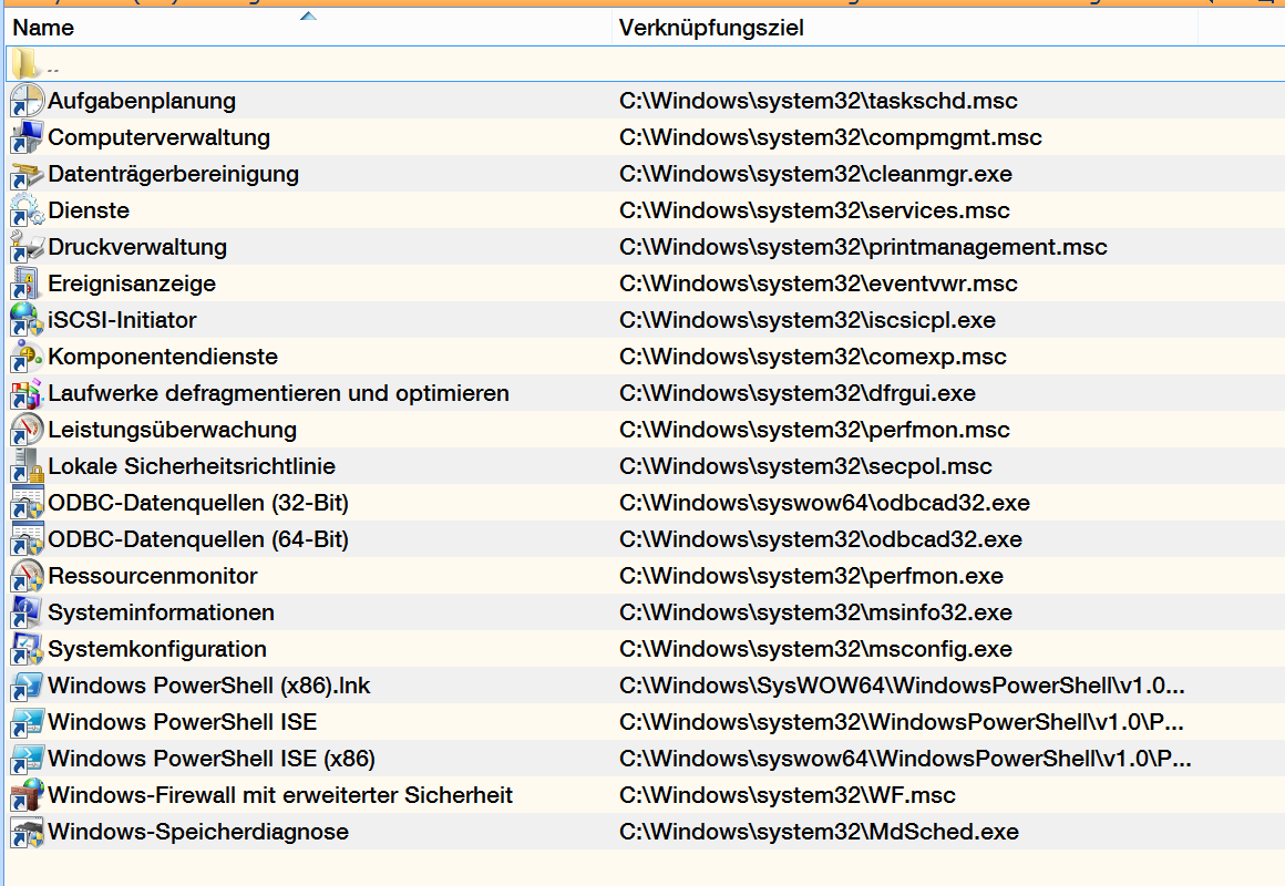 Die neue Spalte Verknüpfungsziel zeigt an, wo Abzweigungen, symbolische Links und .lnk-Dateien hinführen: